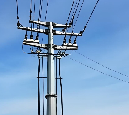 特点:承受导线重量、侧面风力以及邻档导线拉力差所引起的沿线路方向的拉力。为平衡此拉力,通常在其前后方各装一根拉线。耐张杆的设置有助于保障电力线路在大风等特殊天气下不会被强风刮倒,保证架空线路整体的稳定性。