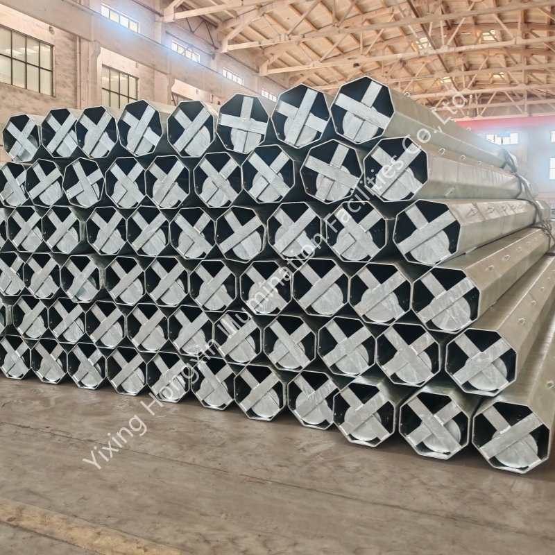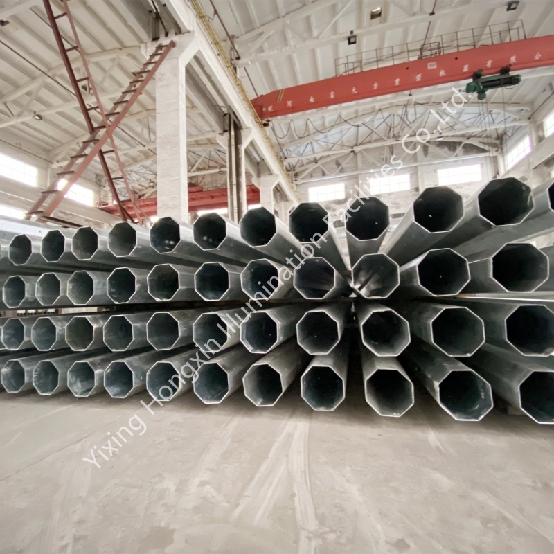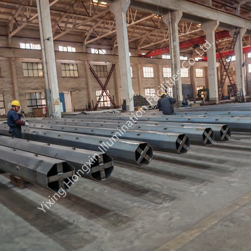 Hongxin was founded in 2001 with a registered capital of 30 million yuan. The factory covers an area of 15,000 square meters. It has 50 employees and a monthly production capacity of over 1,000 tons of steel poles and steel components. The main products include 15KV Nea standard power steel poles, 69KV power steel poles, 10KV - 500KV transmission steel poles, steel crossarms, various street lamp poles, high - mast lamp poles, traffic signal poles, communication towers, wind power poles, garden lamp poles, flagpoles, steel accessories and other hot dip galvanized steel products.