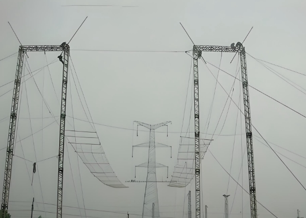 特点:跨越杆应是耐张杆或打拉线的加强直线杆。在跨越杆处,两侧导线用跳线连接,同时在导线拉力反方向各装一根拉线。